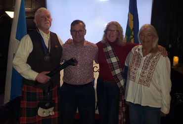 At our January meeting, Laird John Polk and Award Committee Chair Keith Reagan recognized Andrea Bowden, Society Secretary and Co-Editor of the Sporran newsletter, as the 2025 recipient of the John R (Jack) Owen Memorial Award for outstanding service to the Society.