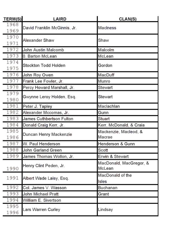 The list of all who have served as Laird: